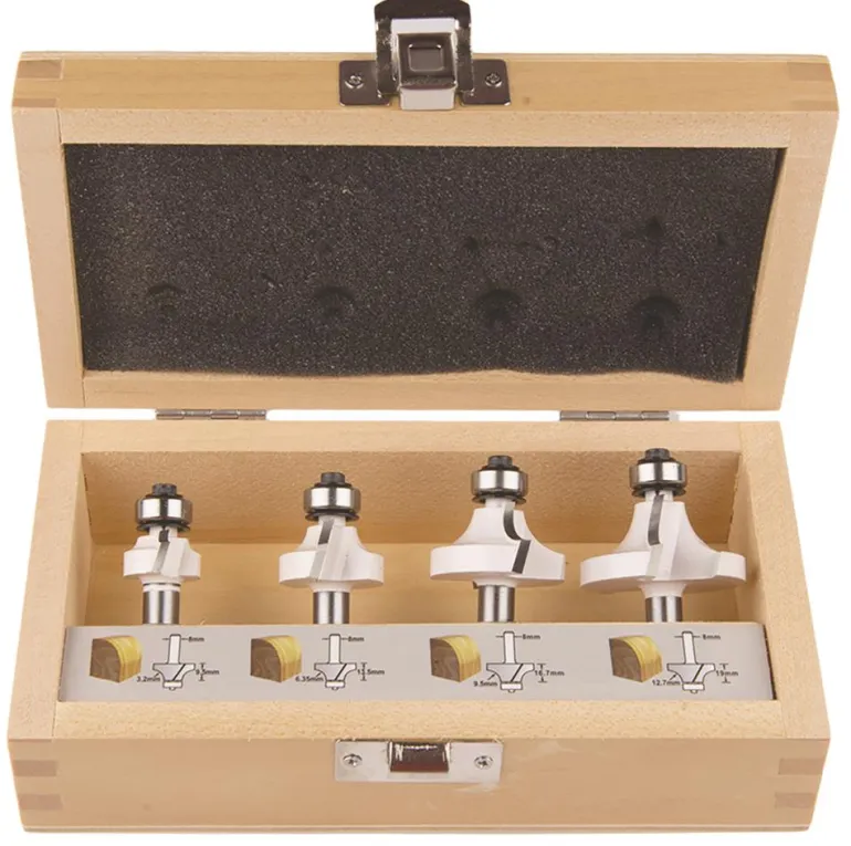 Makita D-53534 on jyrsinteräsarja, joka sisältää neljä erilaista jyrsinterää käytännöllisessä puisessa säilytyslaatikossa (4 x pyöristysjyrsin). Kara 8 mm.