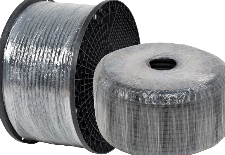 Aaltoputki PP, esireititetty kierretty FQ, CPR-luokka Dca, upotettava, jäykkyysluokka 750 N, lämpötila-alue -25…+90 °C, pituusmerkitty, putket standardin EN 61386-22 mukaisia, halogeenittomia