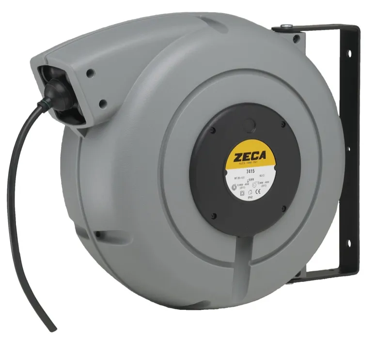 Palautusjousikela, jossa on iskunkestävä termoplastinen kansi ja ripustussanka, joka mahdollistaa 180°/310° kääntymisen kokoonpanosta riippuen. Kaapeli lukittuu automaattisesti 50 senttimetrin välein. Kaapelikelan pituus on 22 m ja se toimitetaan kaapelilla H07RN-F. Varustettu kolmella johtimella ja nollattavalla ylikuormitussuojalla.