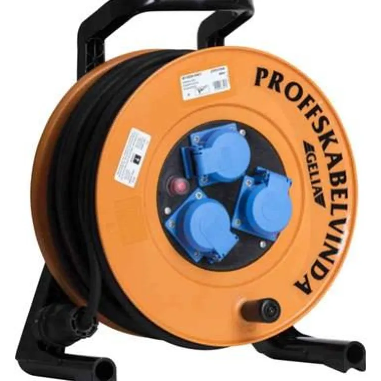 40m:n kaapelikela, jossa on 3 pistorasiaa (schuko) 16 A, 230 V, itsesulkeutuva kansi ja jarru. Kaapelikela on testattu -20 °C:n lämpötilassa