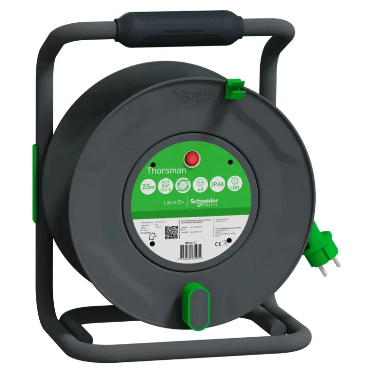 Kaapelikela, jossa 4 pistorasiaa, 230 V. Kelassa on ergonomiset kantokahvat ja sisäänvedettävät kahvat, jotka tekevät kaapelin kelaamisesta nopeaa, turvallista ja helppoa. LED-merkkivalo osoittaa, milloin kaapelikela on kytketty virtalähteeseen. Voidaan käyttää ulkona -35 asteeseen asti.