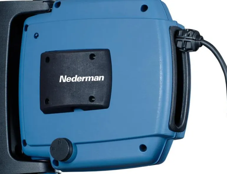 Valmistettu iskunkestävästä komposiittimateriaalista. Kääntyvä pikakiinnike seinää ja kattoa varten. Optimoitu ulostulo helpottaa letkun reititystä kaikissa kulmissa. Kaapeli maadoitetulla naarasliittimellä IP55. Rumpu, jossa on kuulalaakerit molemmin puolin. Toimitetaan 1 metrin liitäntäkaapelilla, 3×1,5 mm². Jakokaapeli maadoitetulla naarasliittimellä IP44 tai ilman.