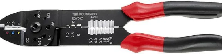 Facom 449B on kaapelikenkäpihdit, joissa sisäänrakennettu johtimen leikkaustoiminto eristettyjen ja paljaiden johtimien puristusliitosten tekemiseen, 1,5–6 mm.
