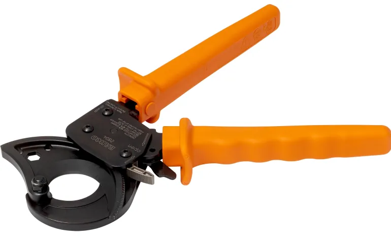 Räikkäkaapelileikkurit optimaalisella vipuvoimalla. Leikkauskapasiteetti: Kuparilanka, muovipinnoitetut kupari- tai alumiinikaapelit. Erikoisterästä. Kromattu ja kiillotettu, leikkausosa fosfatoitu, punaiset PVC-kahvat. Hyvä ote katkaisun aikana, voidaan irrottaa puristusleuoista missä tahansa katkaisuasennossa. Ei nosta teräsytimisiä kaapeleita tai terässuojattuja kaapeleita. Monijohdinkaapelit: 2804 korkeintaan 240 mm² Cu ja 2805 korkeintaan 400 mm² Cu.