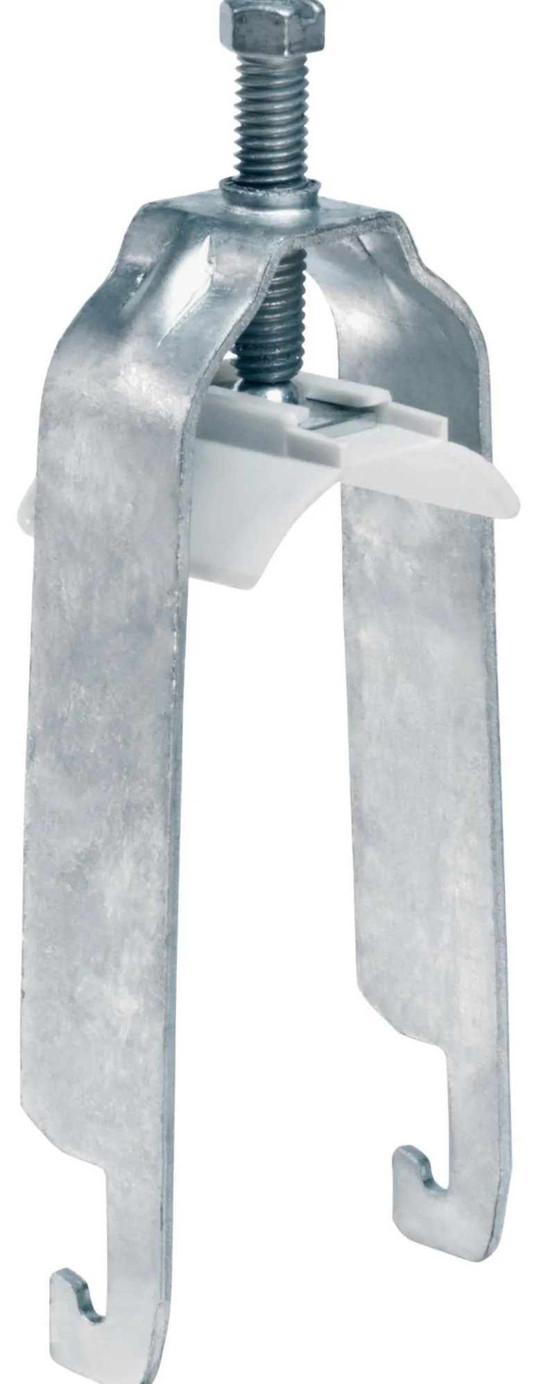 KSV-hakanen. Litteälle, kulma- ja U-profiilille, jonka paksuus on 4–12 mm, ja ankkurikiskoille, joiden uran leveys on vähintään 18 mm. Kaapelipidikkeet on valmistettu kuumasinkitystä teräksestä, ja niissä on polypropeeniset välikkeet.