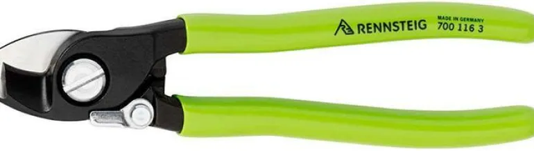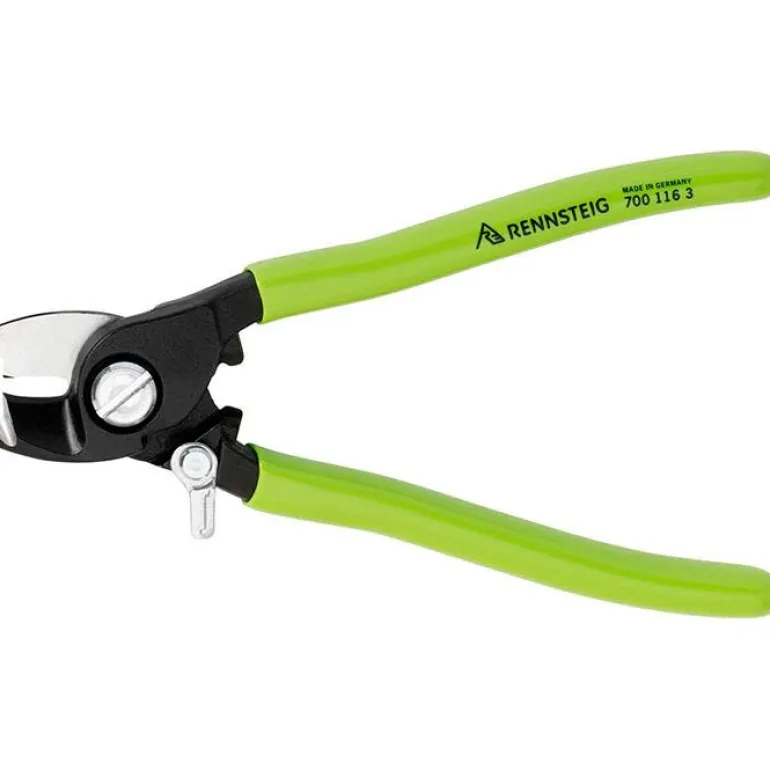 Rennsteig 7001163 monikäyttöiset ja kompaktit kaapelisakset NYM/NM-B-langan leikkaamiseen ja kuorimiseen (3×1,5 mm²-5×2,5 mm²). Molemmilla puolilla yleismallin skaalausasento ja kaapelin turvallinen sijoittaminen skaalausalueelle V-muotoisen leikkausgeometrian ansiosta.