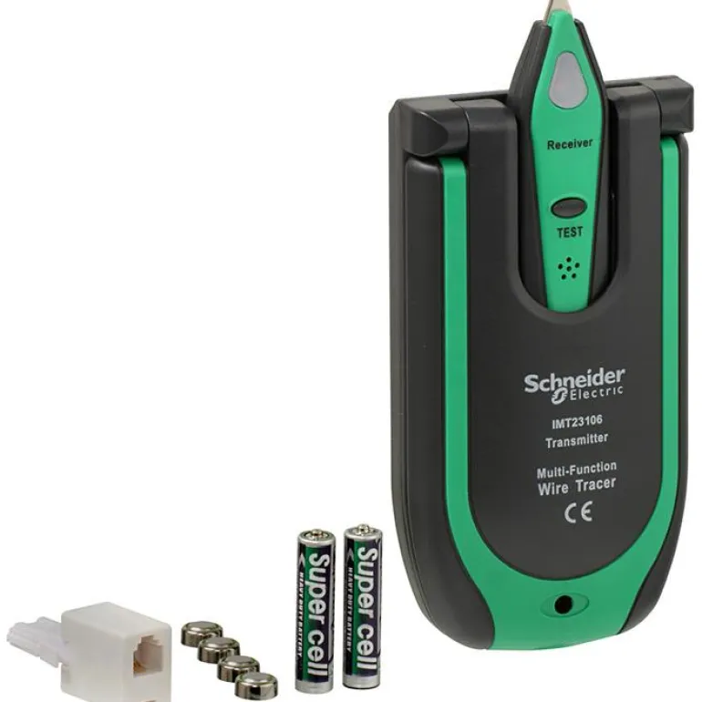 Schneider IMT23106 on Kaapelitesteri, joka on suunniteltu seuraamaan erilaisia virtaamattomia kaapeleita. Testeri koostuu lähettimestä ja vastaanottimesta ja toimii hyvissä olosuhteissa jopa 300 cm etäisyydellä jäljitetystä johdosta. Toimitetaan viidellä liittimellä verkkovirtajohtoihin liittämistä varten, RJ11-liittimellä, koaksiaaliliittimellä, kahdella hauenleualla, ajoneuvon sulakeliittimellä ja akuilla (2 AAA, 4 LR44).
