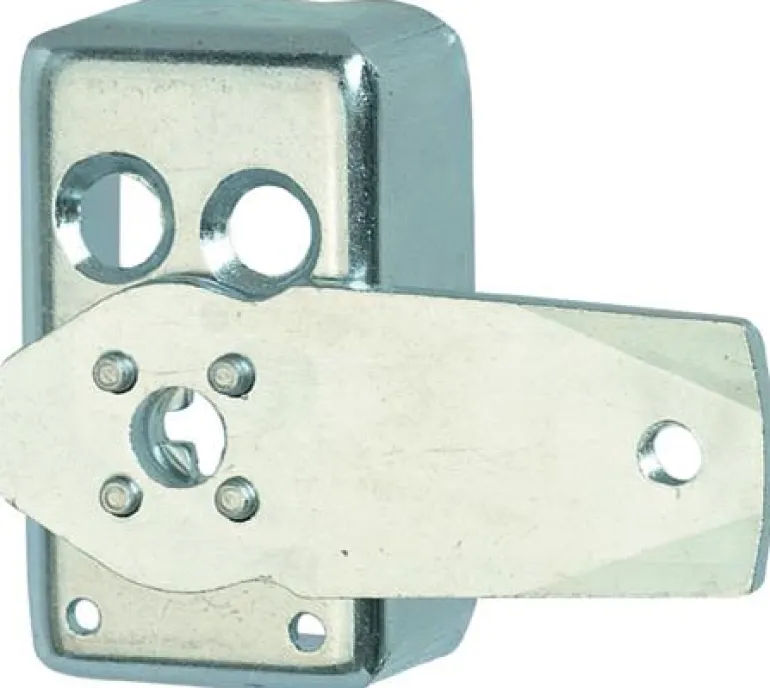 Sinkitystä teräksestä valmistettu kaapin lukkokotelo, jossa on kaapin oviin sopiva uppolukko. 5-piikkisellä sylinterillä oven paksuus voi vaihdella välillä 15-60 mm.