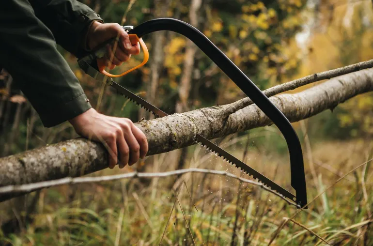 Kaarisaha raskaampaan työhön, kuten runkojen ja vahvojen oksien leikkaamiseen, halkaisija > 10-20 cm. Karkaistu terässahanterä on pitkäikäinen ja erittäin terävä.