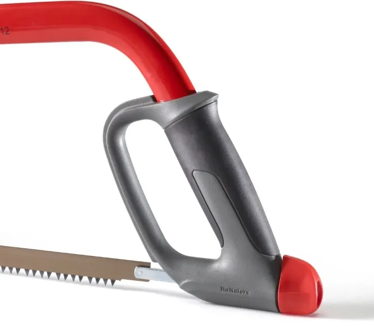 Kaarisahan terä C75-teräksestä, ergonomisesti muotoiltu kahva ja rystyssuoja. Kahva on valmistettu PP-muovista ja siinä on kumipäällyste, mikä mahdollistaa tukevan pidon myös kosteissa olosuhteissa. Kolmiomainen muotoilu helpottaa ahtaissa paikoissa tapahtuvaa sahaamista.