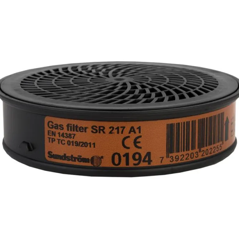 Kaasuilta ja höyryiltä suojaava suodatin, jossa on optimoitu imeytyminen. 1 luokan SR 217 -kaasusuodatin on suunniteltu käytettäväksi Sundströmin puoli- ja kokonaamareiden kanssa. Suodattimen ovat tyyppiä A ja suojaavat orgaanisilta kaasuilta ja höyryiltä, kuten liuottimilta, joiden kiehumispiste > +65 °C.