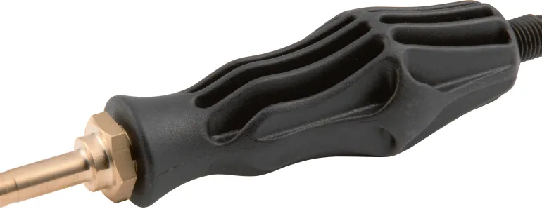 Ergonominen muovikahva injektorilla, malliin REMS Eskimo 2. Kestävä messinkinen injektori (ruiskutussuutin), nopeampi ja turvallisempi liitäntä jäädytysmansetteihin.