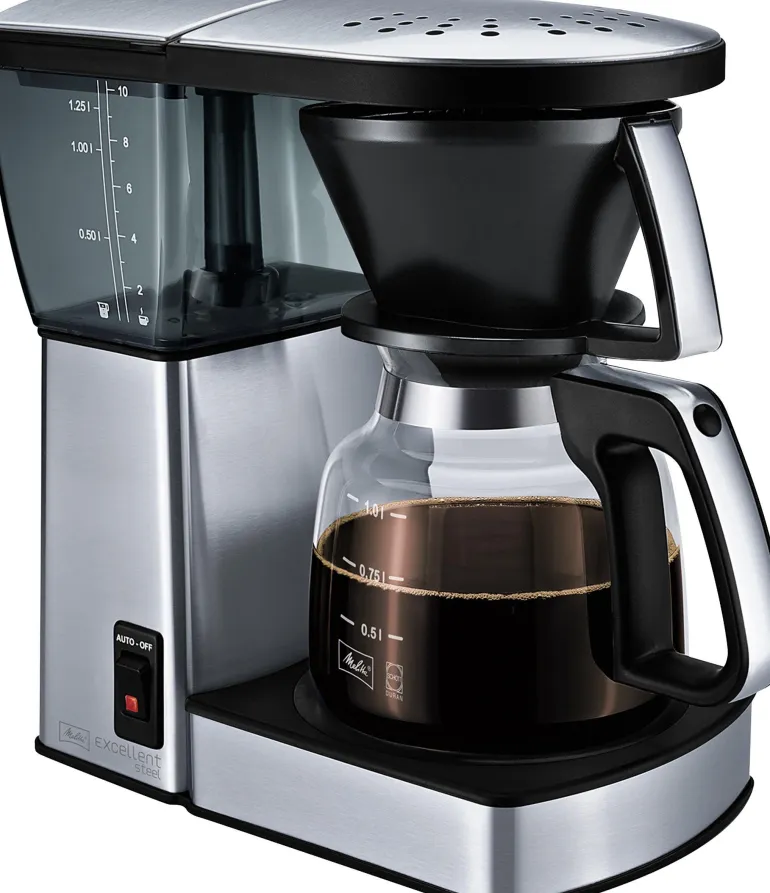 Melitta Excellent Steel 4.0 on kahvinkeitin, jossa yhdistyvät hyödylliset ominaisuudet ja trendikäs retromalli ruostumattomasta teräksestä.