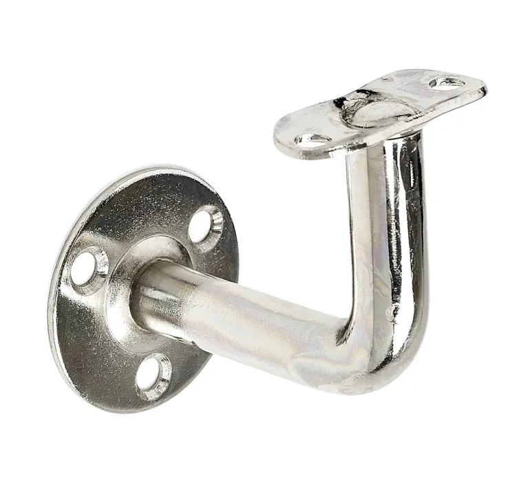 Kiiltävä nikkelipinnoitettu teräksinen kaidekoukku puuseinälle. Etäisyys seinästä 70 mm. Seinäaluslevy 48 mm.