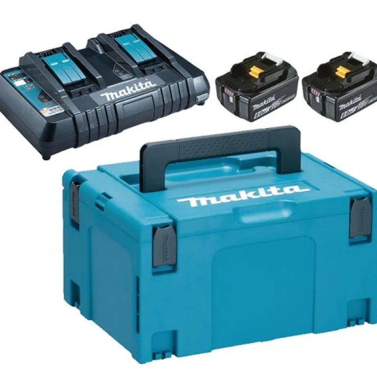 Makita Powerpack 198077-8 on kaksoislatauslaite. Tästä paketista kätevästi virtaa 18V LXT akkukoneisiin. Yhdisteltävä Makpac kantolaukku sisältää kaksi 6.0Ah akun varaustilan näytöllä varustettua Li-ion akkua sekä kaksoislatauslaitteen DC18RD, joka lataa akun täyteen noin 55 minuutissa.