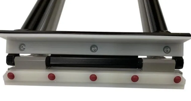 Kaksoissaumansuljin saumataitetun metallilevyn sulkemiseen kaksoissaumaksi. Sulkimessa kumisuojat paremman otteen saamiseksi levystä.