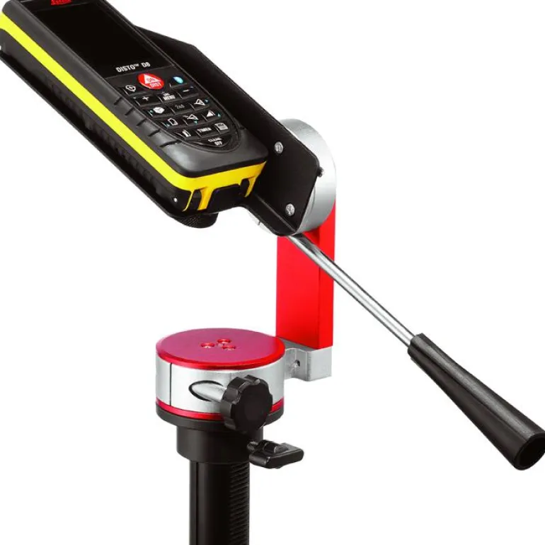 Kallistusadapteri etäisyysmittarilla mittaukseen. Varustettu pienellä 1/4″-kierreliitoksella. Pyörivä akseli, kallistusakseli ja laserakseli kohtaavat yhdessä pisteessä. Tämän ansiosta mittauspoikkeama on minimaalinen.