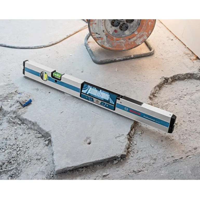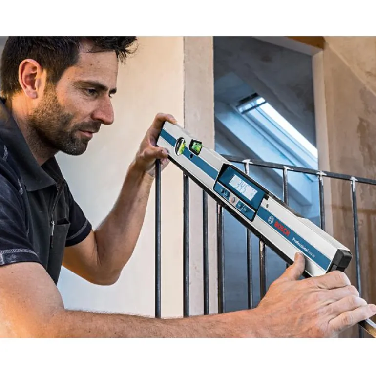 Bosch GIM 60 Professional on digitaalinen kaltevuusmitta, 60 cm. Mittaa kulmat asteina ja kaltevuudet prosentteina tai mm/m. Suuntanuolet ja akustinen merkkiääni 0–90° helppoon suuntaamiseen. Kestävä alumiinirunko.