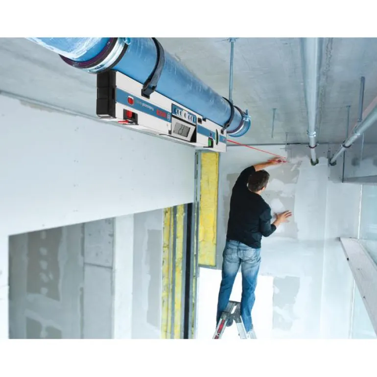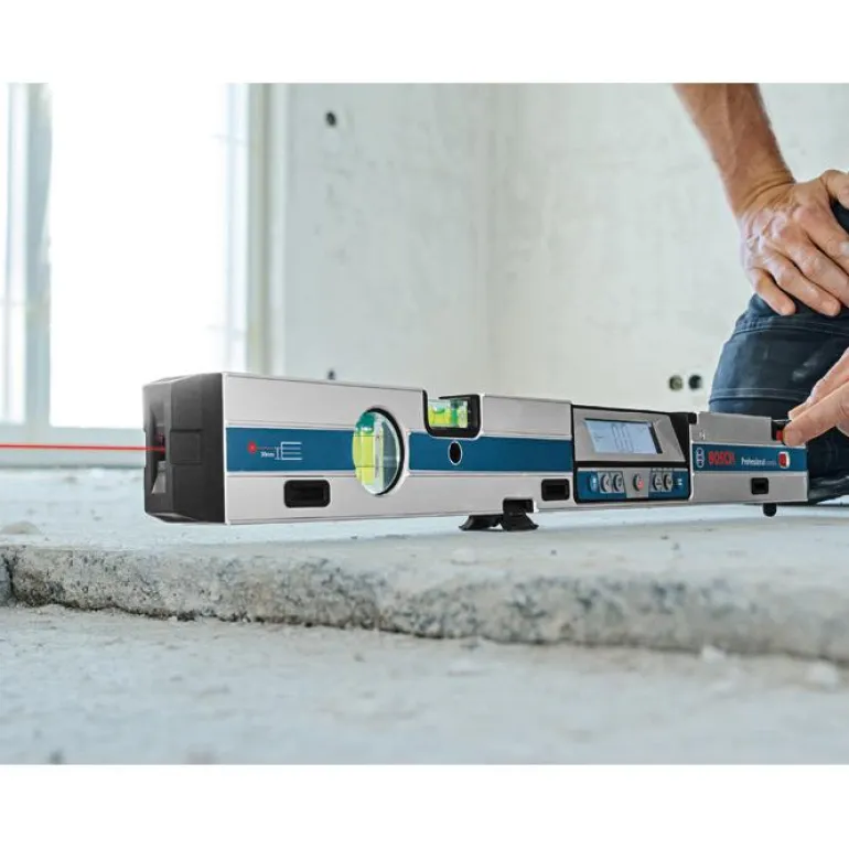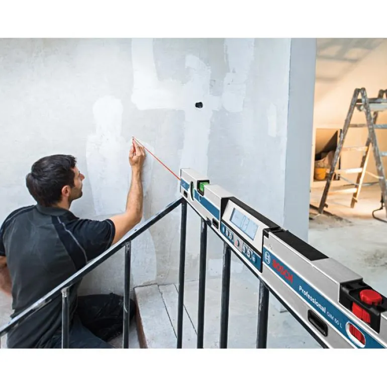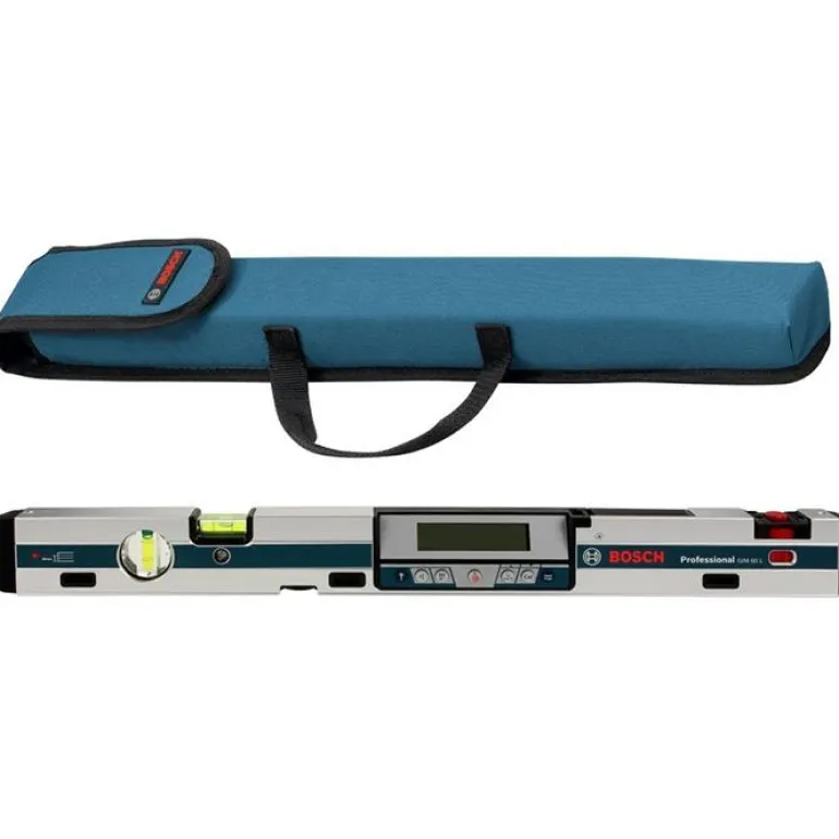 Bosch GIM 60 L Professional on digitaalinen kaltevuusmitta 60 cm, jossa on sisäänrakennettu pistelaser 30 m:n pituiseen kallistusmittaukseen.