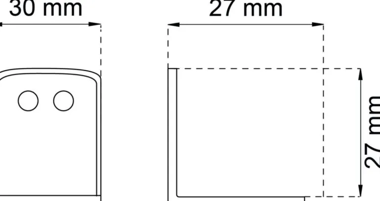 Teräksinen kalustekulma. 27 x 30 x 30 mm. Mukana ruuvit.