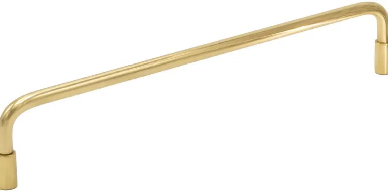 Kiillotettu messinkinen kalustevedin pesuallas-/kylpyhuonekaappeihin. Vetimen kiinnitysväli (c/c) on 160 mm.
