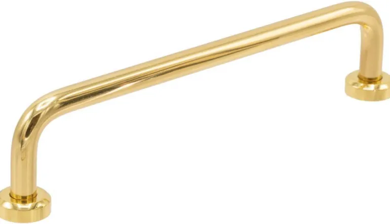 Kiillotettu messinkinen kalustevedin pesuallas-/kylpyhuonekaappeihin. Vetimen kiinnitysväli (c/c) on 128 mm.