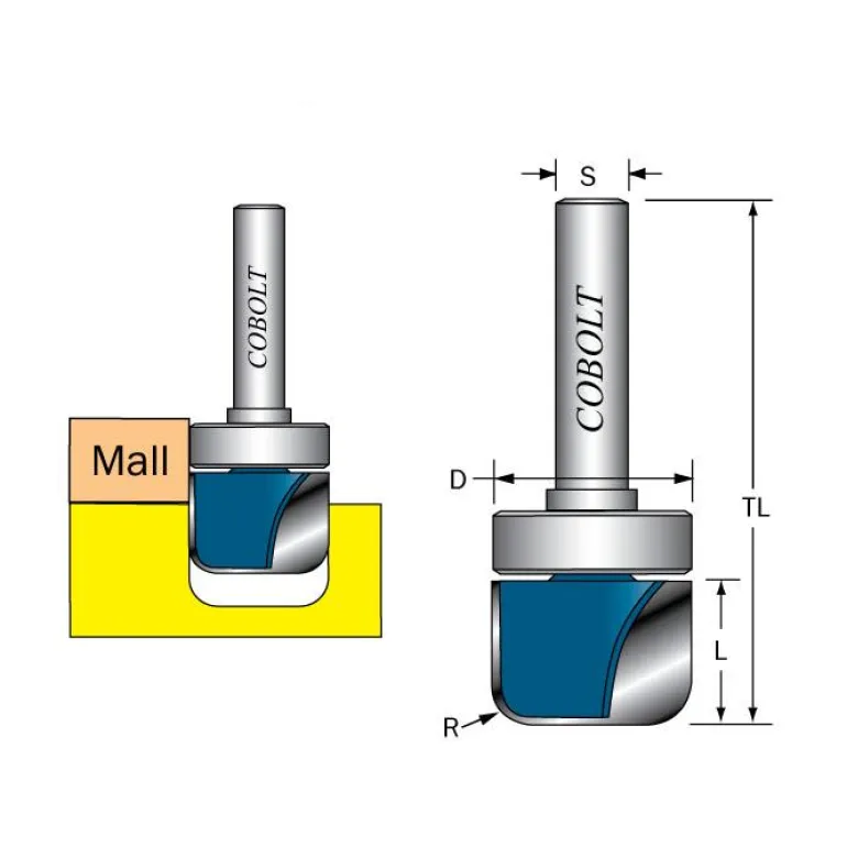 Koboltti 240-922 Kanavaleikkuri/kuppijyrsin S=8, L=16, D=22, R=4,5. Akseliin asennetulla ohjauslaakerilla M-228.