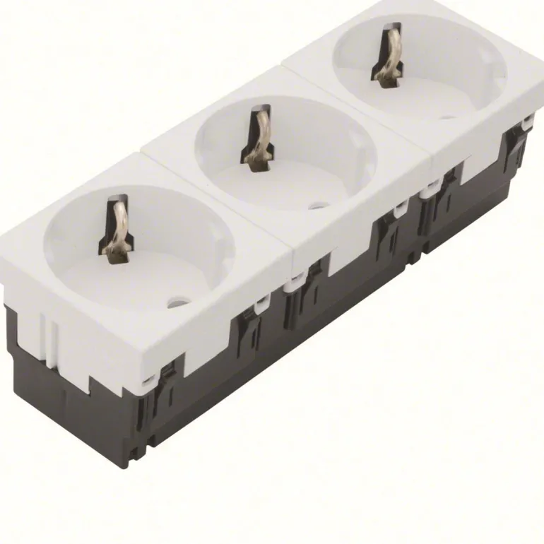 Kanavapistorasia 3-osainen 16A IP2XC jousiliittimillä valkoinen RAL9010 45×135 mm. Sopii Hager lattiarasioihin tarkoitettujen kojerasioiden GTVR300 ja GTVR400 sekä GBVR300 ja GBVR400 asennuskehyksen GBMVB34R3 kanssa.