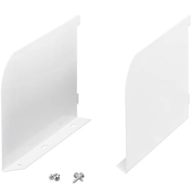 ELFA 467010 -kannattimien päät on tarkoitettu melamiinihyllytason asennukseen. Päätykapselit toimivat myös integroituna kirjatukena. Mukana toimitetaan kiinnitysruuvit. Saatavissa eri syvyyksillä. Toimitetaan parina (vasen ja oikea).