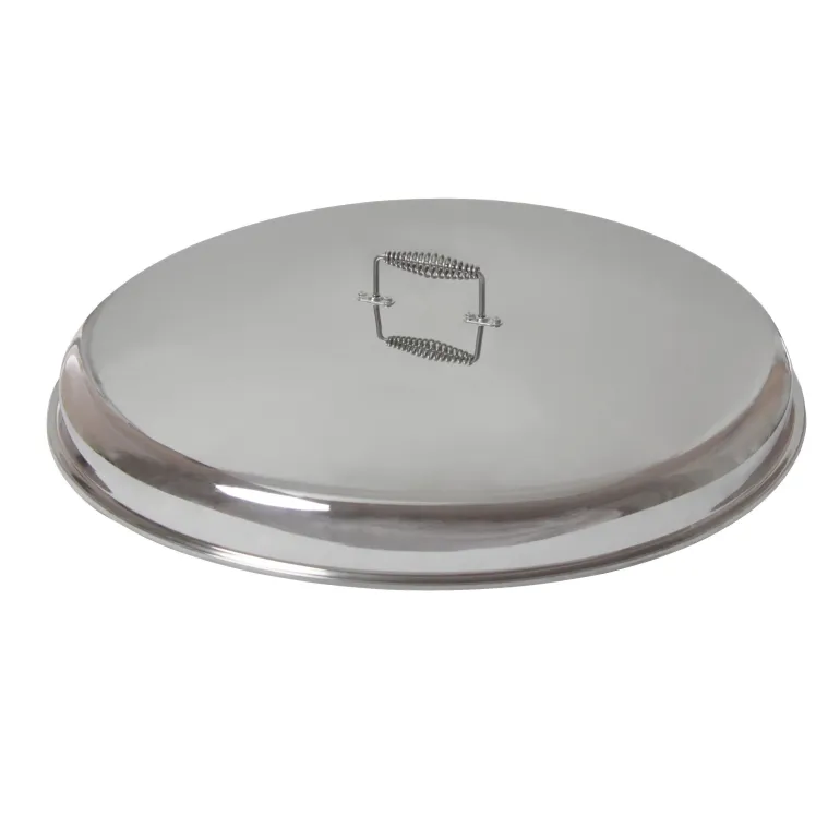 Hällmarkin 78 cm muurinpohjapannun kansi, joka suojaa ruokaa ja pitää sen lämpimänä. Valmistettu vahvasta ruostumattomasta teräksestä.