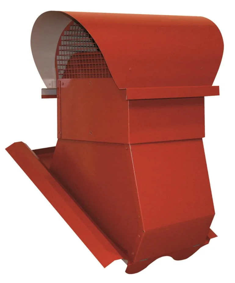 Poistoilma- ja ulkoilmakansi asuntoihin (mukana supistusosa Ø160:stä Ø125:een) ilmanvaihtoon tai poistoilmakanavaan. Alaosa asennetaan katon kallistukseen.