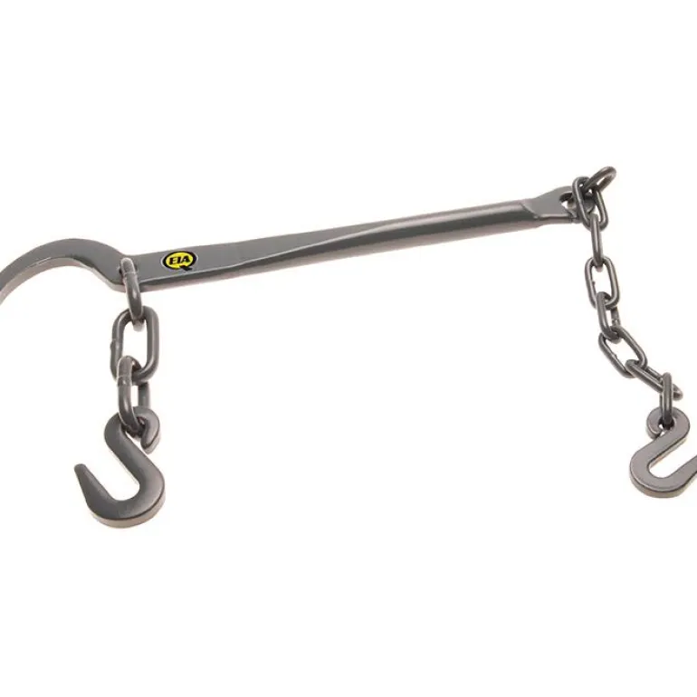 Takoteräksestä valmistettu karhulukko, johon sisältyy ketju ja koukut. Pituus 295 mm, kiinnitettäessä käytetään ketjuja.