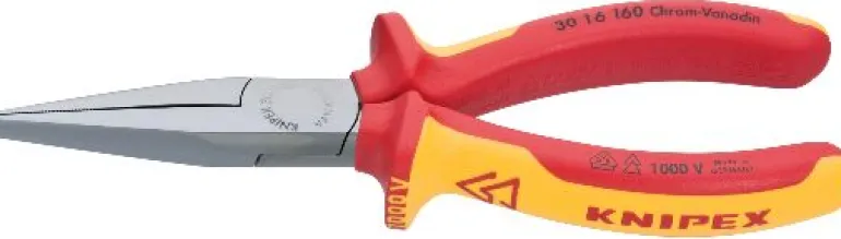 Kärkipihdit, kromattu. Yksi liitos, pitkät leuat ja uritettu tartuntapinta. Kärkien pituus 47 mm. Kärkipihdeissä on käytetty kaksikomponenttimateriaalia, jossa on pehmeävyöhykkeet ja selkeä merkintä väärinkäytön välttämiseksi. Pihdit on hyväksytty DIN ISO 5745 -standardin mukaan 1 000 V:n jännitteellä tehtävään työhön.