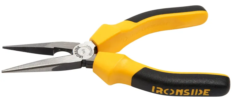 Kromi-vanadiiniterästä. Leuat uritetuilla otepinnoilla ja sivuleikkurilla. Ergonomiset kahvat kaksikomponenttimateriaalia.