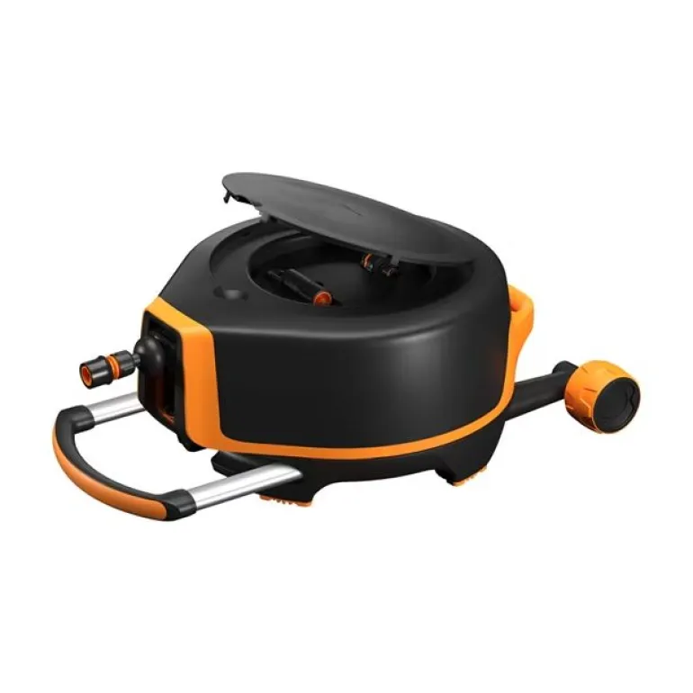 Automaattisella sisäänkelauksella varustettu X-Series™-kärrykastelukela XL on käyttövalmis kastelusetti, joka sisältää kaikki kasteluun tarvittavat, valmiiksi kootut osat. Letkun pituus 27 m. Mukana tulee kaksi 13 mm (1/2″) pikaliitintä (Flow) ja yksi 13 mm (1/2″) pikaliitin (stop). Yhteensopiva myös muunmerkkisten kastelutuotteiden kanssa.