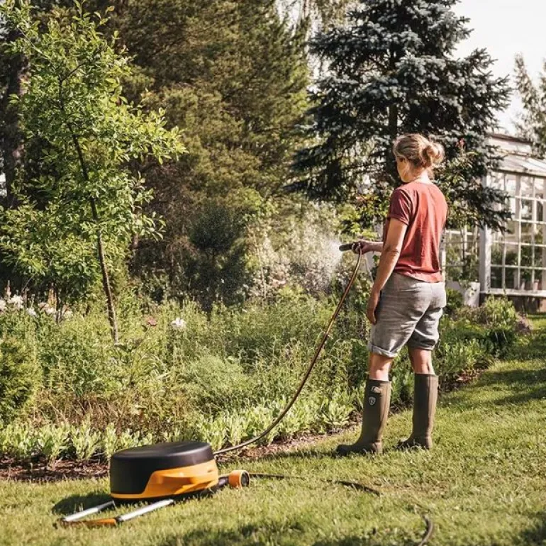 Automaattisella sisäänkelauksella varustettu X-Series™-kärrykastelukela XL on käyttövalmis kastelusetti, joka sisältää kaikki kasteluun tarvittavat, valmiiksi kootut osat. Letkun pituus 27 m.