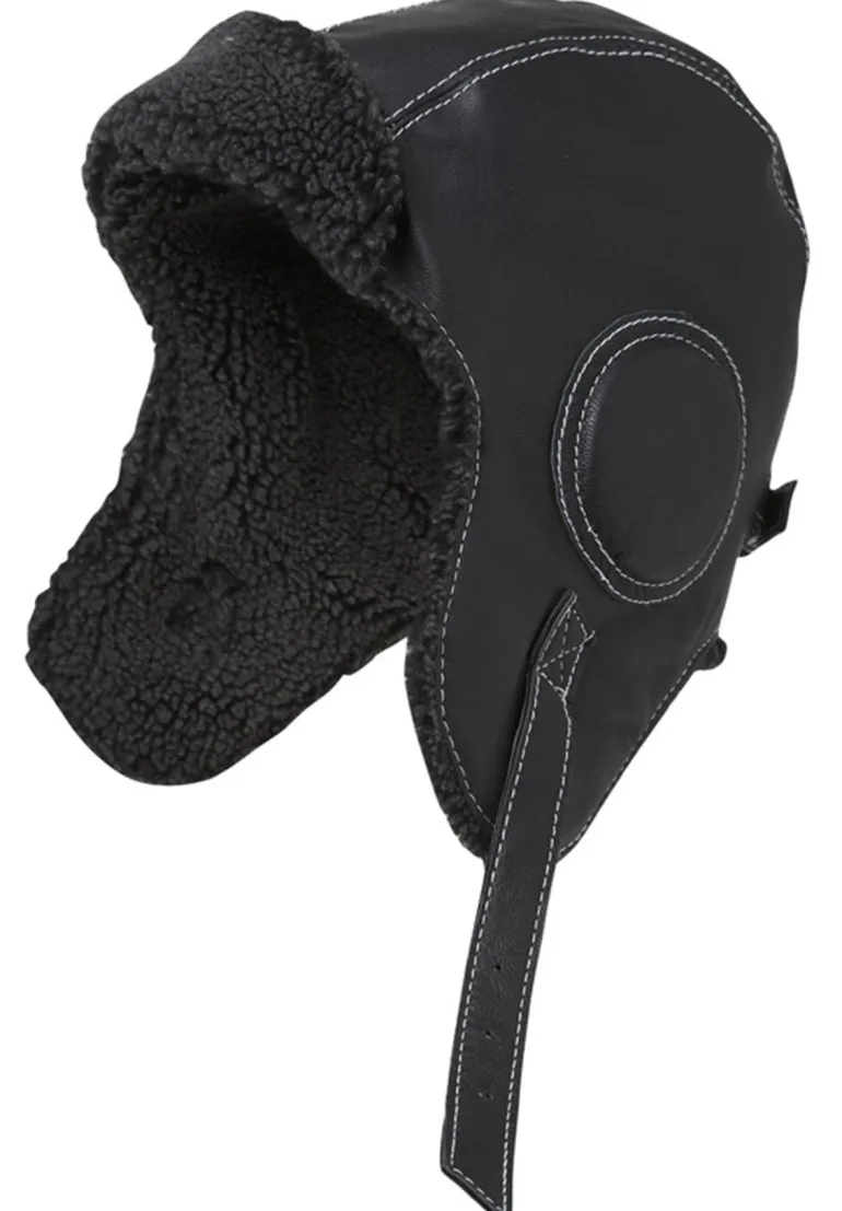 Top Swede M302 on nahkainen pileevuorattu pilottihattu, jonka takana on säädettävä tarranauhakiinnitys.