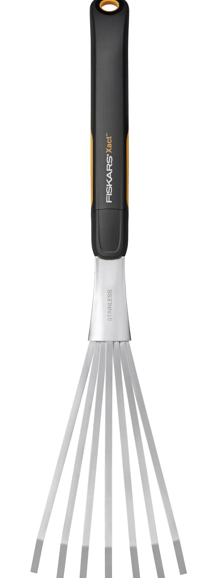 Täydellisesti tasapainotettu käsiharava ruostumatonta terästä. FiberComp-kahva. 25 vuoden takuu.