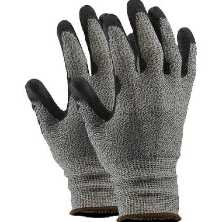 Kudottu PU-pinnoitettu viiltosuojakäsine. Suositellaan puutarhatöihin, missä on viiltovaara. Mukavat kädessä, hyvä sormituntuma. Nylonia, lasikuitua ja HPPE-kuitua.
