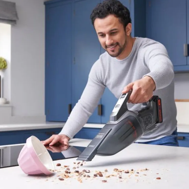 Suulakkeiden säilytystilan ansiosta kaikki osat pysyvät paikallaan. Tehokkaan BLACK+DECKER POWER CONNECT -akun ansiosta 1,5Ah:n akulla voit siivota jopa 12 minuuttia. Tämä malli on yhteensopiva kaikkien BLACK+DECKER 18 V POWER CONNECT -akkujen kanssa. Yksi akkujärjestelmä – loputtomat mahdollisuudet. Mukana sekä leveä että kapea suulake, joita voidaan säilyttää laitteessa.