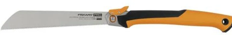 Fiskars Pro PowerTooth™-taitettavan vetosahan optimoitu terä mahdollistaa erinomaisen tarkkuuden ja suorituskyvyn pehmeillä puulajeilla, mutta myös lankkujen, PVC:n ja muiden materiaalien yleisiin sahaustöihin. Ohut terä on joustava, joten voit sahata sillä helposti ja nopeasti myös pinnanmyötäisesti. Vetosaha taittuu puoleen kokonaismitastaan, jolloin sen erikoisterävät, hienoviimeistellyt hampaat ovat suojassa.