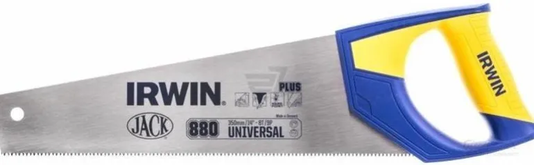 Irwin Jack PLUS on käsityöläiselle sopiva 350 mm:n ja 8 TPI:n käsisaha. PLUS-sarjan käsisahat tarjoavat parhaan käyttökokemuksen ja leikkuulaadun. edistyksellisen hammastusteknologian ja ergonomisen ProTouch-kahvan ansiosta. Näiden ominaisuuksien lisäksi sarjan tuotteissa on valintaa helpottavat värikoodatut kahvat. Sormituella varustetussa ProTouch-kahvoissa on kolminkertainen määrä elastomeeria pehmeän tuntuman ja hallinnan varmistamiseksi. Jack PLUS -käsisahassa on kolmelta suunnalta hiotut hampaat, joiden ansiosta yleiskäyttöinen saha soveltuu monipuoliseen katkaisuun ja useimmille rakennusmateriaaleille.