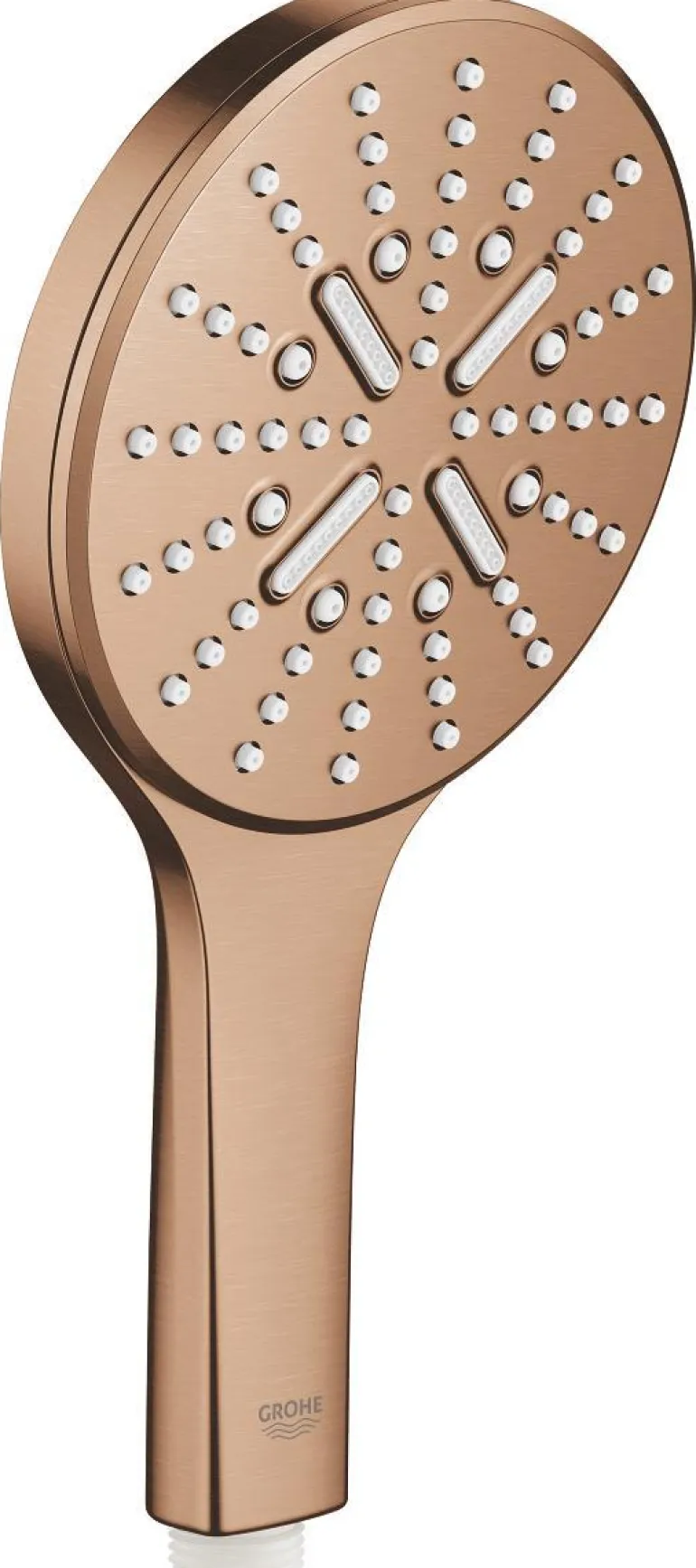Käsisuihku kolmella suihkukuviolla – Rain, Jet ja ActiveMassage. Käsisuihku alkaa aina Rain-suihkumuodolla, mutta voit helposti vaihtaa kuviota kätevän painikkeen avulla. Käsisuihkussa on DreamSpray-toiminto, SpeedClean-kalkinpoistojärjestelmä ja vettä säästävä EcoJoy-virtausrajoitin, joka pitää veden kulutuksen 9,5 l/min.