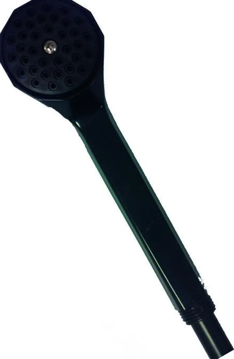Musta käsisuihku muovisella siivilällä, jonka suuret reiät tarjoavat pehmeitä suihkuja. Estää legionellabakteerit mustan värin ansiosta.