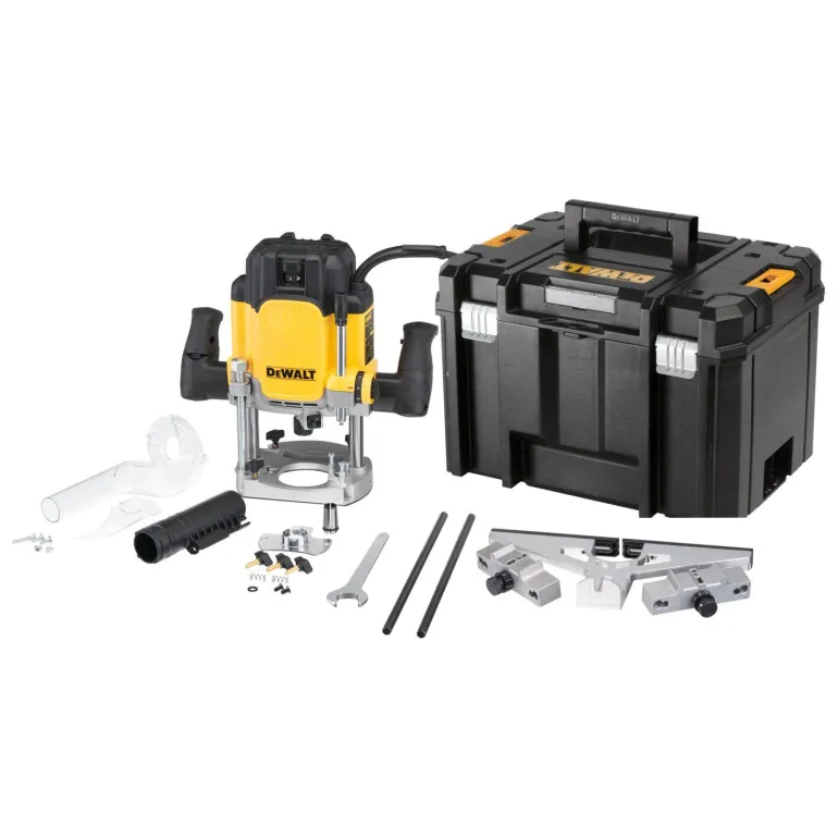 DEWALT 230 V:n jyrsin on suunniteltu suoriutumaan vaativimmistakin töistä. Kompakti koko ja anatomisesti suunnitellut kahvat helpottavat käyttöä pitkien työskentelyjaksojen aikana. Itsevoitelevat fosforipronssiholkit tarjoavat tarkan, pitkäkestoisen ja tasaisen jyrsintätehon. Tarkka syvyyssäätö mahdollistaa toistettavat ja tarkat leikkaukset. Parempi pölynpoisto AirLock-yhteensopivan suuttimen kautta. Nollajännitekytkin estää tahattoman käynnistyksen, jos koneen virta katkeaa. Kytkin on aktivoitava uudelleenkäynnistystä varten. Tämä parantaa turvallisuutta.