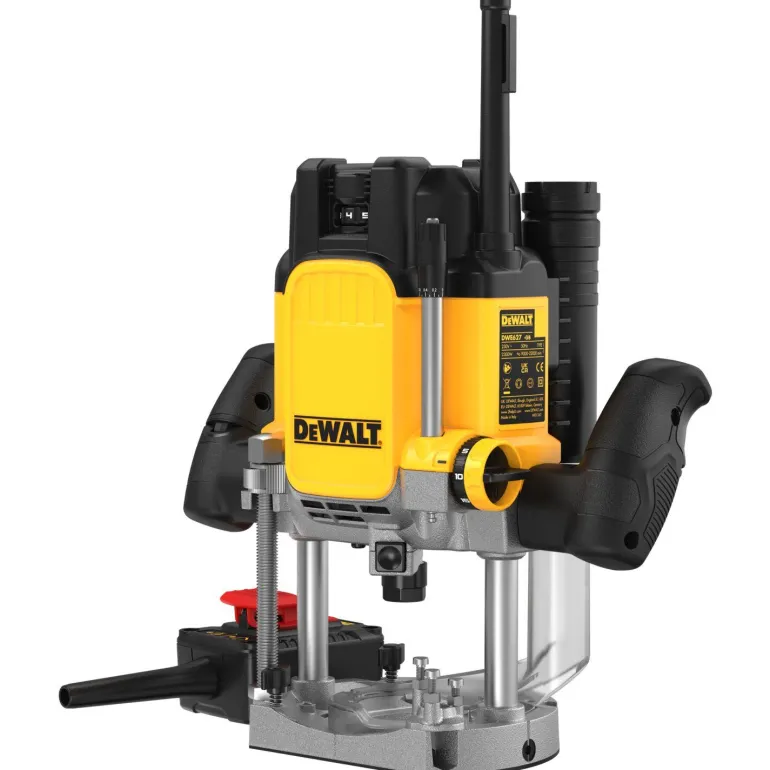 DEWALT 230 V:n jyrsin on suunniteltu suoriutumaan vaativimmistakin töistä. Kompakti koko ja anatomisesti suunnitellut kahvat helpottavat käyttöä pitkien työskentelyjaksojen aikana. Itsevoitelevat fosforipronssiholkit tarjoavat tarkan, pitkäkestoisen ja tasaisen jyrsintätehon. Tarkka syvyyssäätö mahdollistaa toistettavat ja tarkat leikkaukset. Parempi pölynpoisto AirLock-yhteensopivan suuttimen kautta. Nollajännitekytkin estää tahattoman käynnistyksen, jos koneen virta katkeaa. Kytkin on aktivoitava uudelleenkäynnistystä varten. Tämä parantaa turvallisuutta. Konekytkin on suunniteltu käytettäväksi ylösalaisin jyrsintäpöydässä.