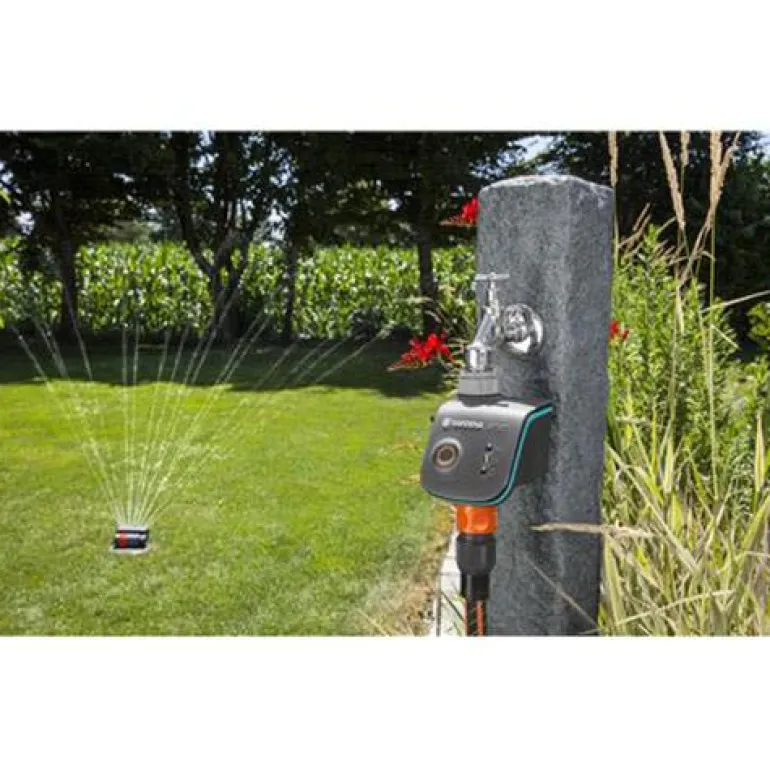 Kastelunohjain, joka ohjaa puutarhan vesijakelua ja varmistaa, että kaikki kasvit saavat tarvitsemansa kosteuden. Kasteluaikoja voidaan säätää helposti internetyhteydellä varustetussa älypuhelimessa tai tabletissa olevalla sovelluksella