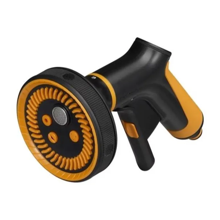 Ergonominen ja helppokäyttöinen Fiskars Multi -kastelupistooli tekee kastelusta aidosti mukavaa. Etukytkimellä varustetussa kahvassa ja vaihdettavassa kastelupäässä on käyttömukavat SoftGrip™-yksityiskohdat, joiden ansiosta osia on helpompi käsitellä ja säätää myös kylmällä säällä. Kääntämällä kastelupäätä voit helposti valita kastelukuvion, joita on yhteensä viisi: sumu, pehmeä suihku, tasainen, huuhtelu ja suora suihku. Lukittavan on/off-etukytkimen ansiosta vedenvirtausta voi säätää portaattomasti.