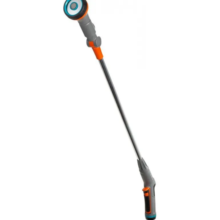 GARDENA Comfort on 90 cm:n kasteluvarsi, joka sopii amppeleiden ja muiden vaikeasti ulottuvilla olevien kasvien kasteluun käännettävän kastelusuuttimen ansiosta. Veden virtausta voidaan säädellä portaattomasti. Liipaisimen voi lukita pitkään jatkuvaa kastelua varten. Jäätymisen kestävä, käytännöllinen ripustin.