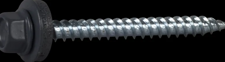 Teräväkärkinen itseporautuva ja itsekierteittävä kateruuvi, jossa on galvanoitu teräsaluslaatta EPDM-tiivisteellä ja polyesterijauhemaalaus. Tarkoitettu profiloidun pellin asennukseen puualustaan.